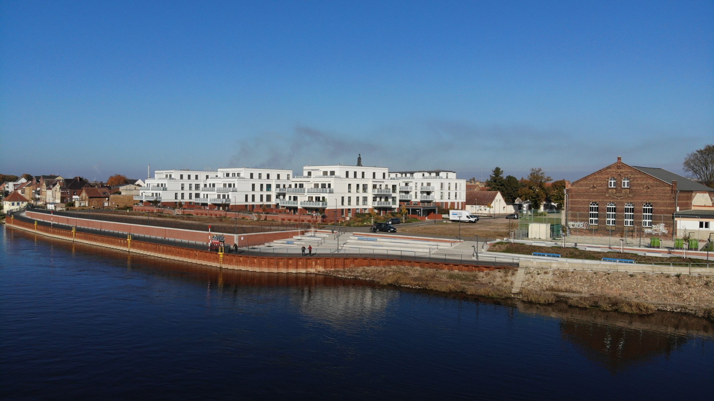 bc Architekten + Ingenieure entwickelten den städtebaulichen Rahmenplan für das neue Stadtquartier „Am Stadthafen“ an der Elbe in Wittenberg. Darauf aufbauend entstand der Bebauungsplan als Grundlage für die Umsetzung in insgesamt vier Bauabschnitten.