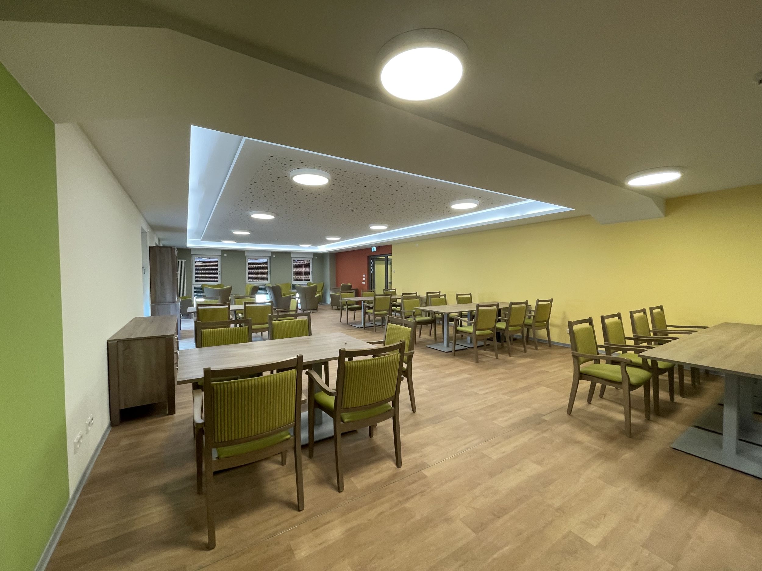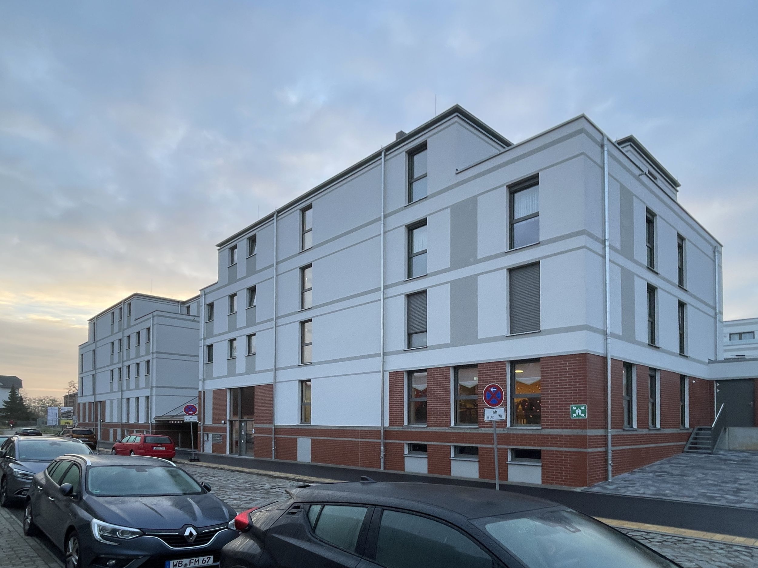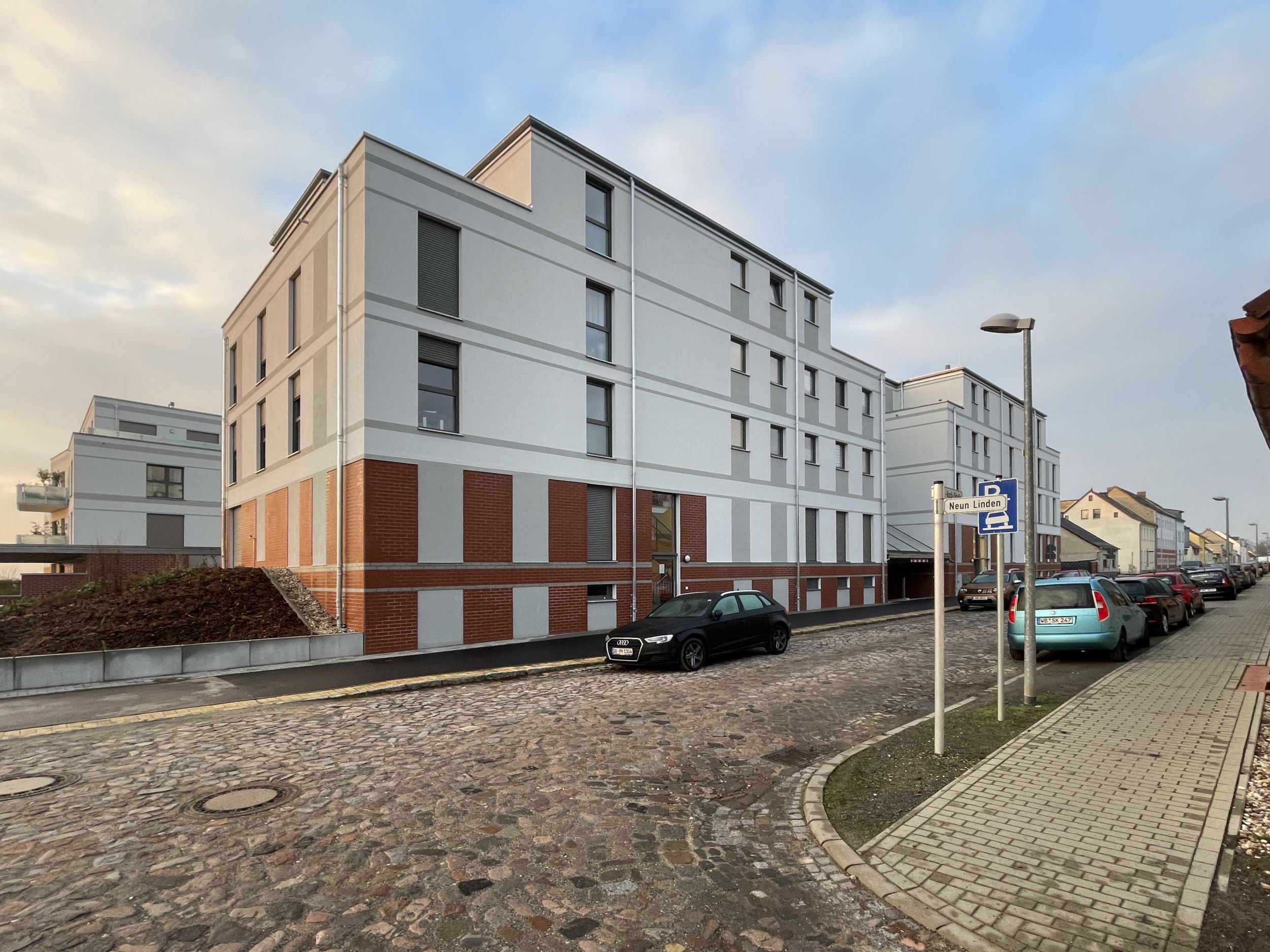 Das dreigeschossige Wohngebäude mit zusätzlichem Staffelgeschoss umfasst 18 barrierefreie Wohnungen für ältere Menschen. Im Erdgeschoss sind eine Tagespflege sowie ein Gemeinschaftsbereich angeordnet. Die Stellplätze befinden sich in einer abgesenkten Unterlagerung.