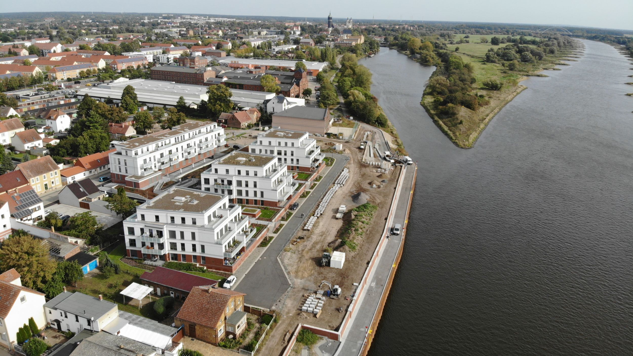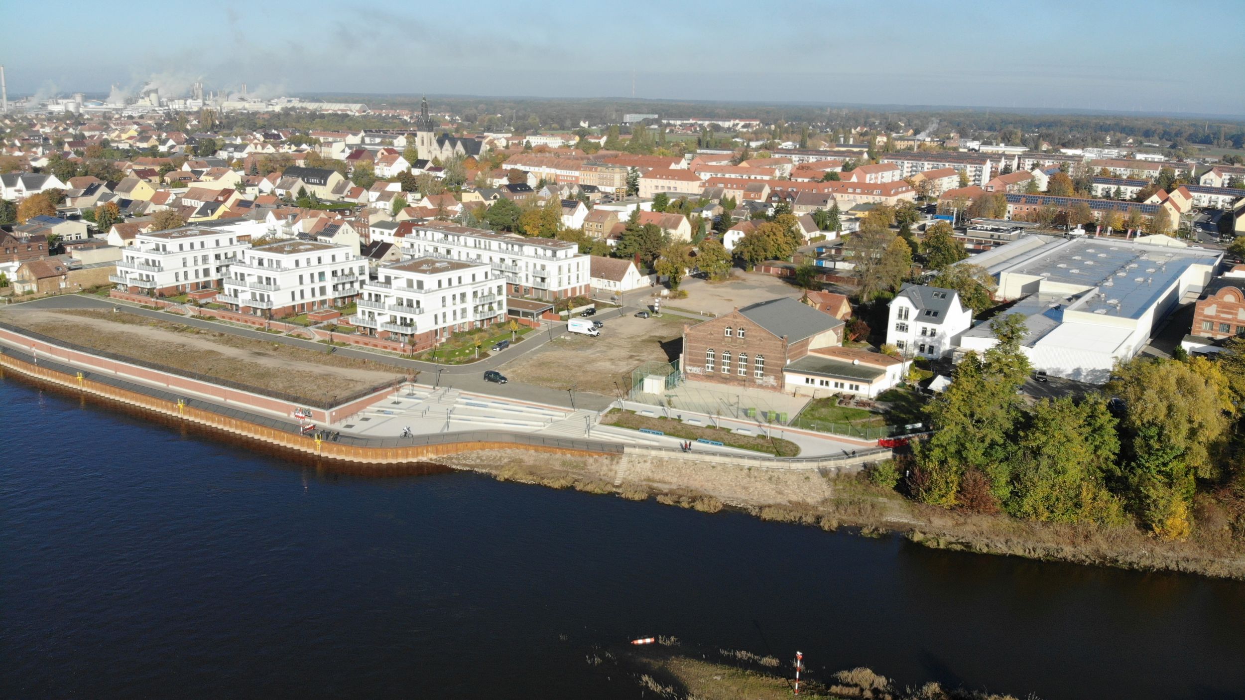 bc Architekten + Ingenieure entwickelten den städtebaulichen Rahmenplan für das neue Stadtquartier „Am Stadthafen“ an der Elbe in Wittenberg. Darauf aufbauend entstand der Bebauungsplan als Grundlage für die Umsetzung in insgesamt vier Bauabschnitten.
